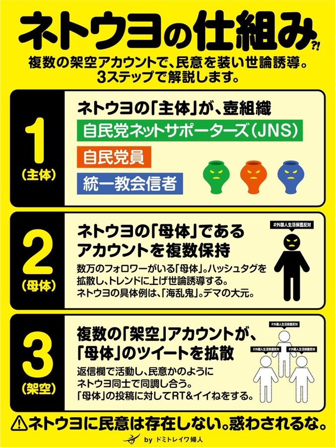 “Amending Article 9 of the Constitution and maintaining a military force is only natural.” Cloudworks and the LDP are using uninformed part-timers to spread this on social media!