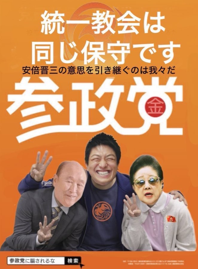 >参政党は「改憲」と「スパイ防止法」を悲願とする統一教会の別動隊!(7/26)